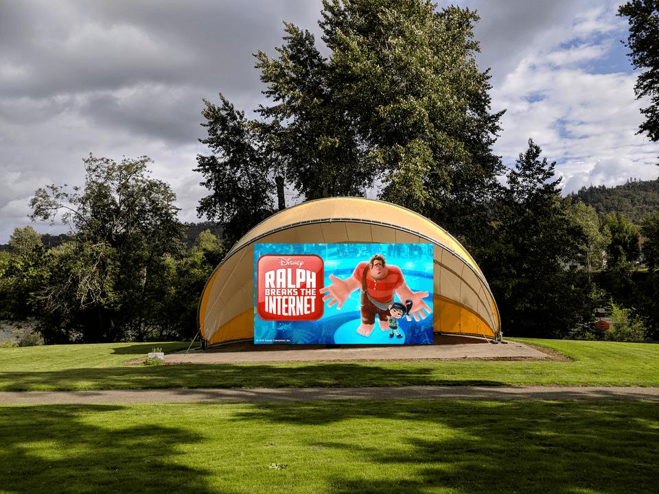 Activities for the free family event start at 7:30pm with food and beverage vendors on site. The movie will begin around 9pm. Bring blankets to sit on and the movie is 1 hr 56 minutes so it should go until about 11pm.