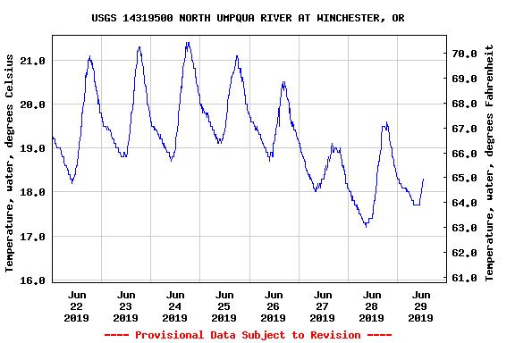 I want to encourage great caution for those swimming and floating in the North Umpqua River today. The temperature is floating between 64 and 66 degrees approximately today. The cooler weather, especially at nights has brought the temperature in the river down significantly.