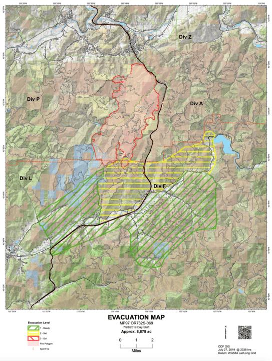 Updated Evacuation Map for Sunday 11am from ODF and Douglas County Sheriff's Office