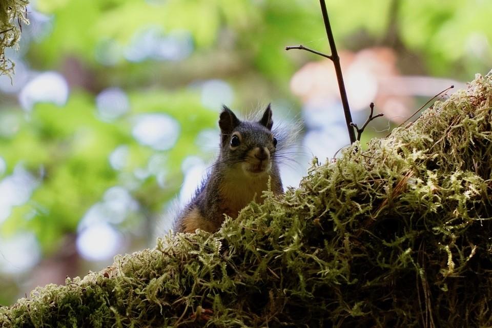 My son captured this great shot of a ground squirrel peering over the moss on a tree branch. Photo by Abraham Finlay