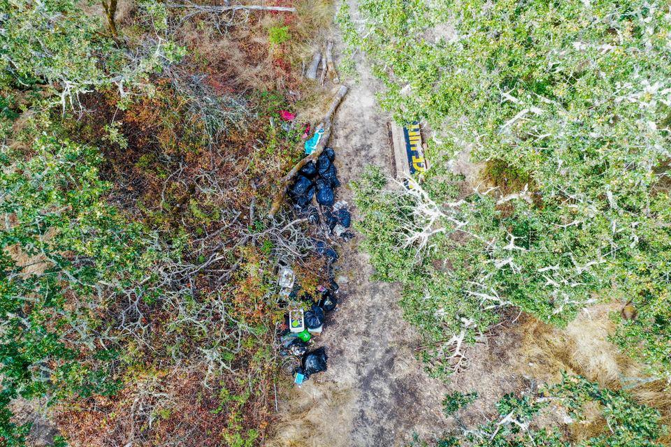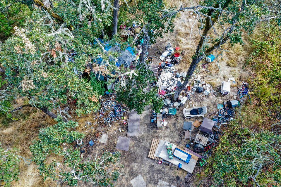Several complaints have come in from residents off of NE Stephens about a growing camp filled with trash and bicycles. Also, travelers on I-5 have reported seeing a man pooping in plain sight of the freeway. After hearing all the reports, Nate Frosland went out to the location to document the situation from the air. The result is this series of photos of the situation.