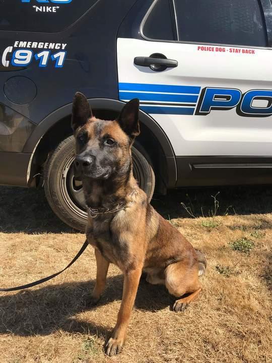 (RPD)On Monday, September 23rd around 0600 hours, K9 Nike was called out to assist the Myrtle Creek Police Department with tracking a vehicle pursuit suspect. Matthew Bay fled from the police and then crashed the vehicle he was driving, on a mountain road. Bay ran from the crash and down a very steep mountain that was choked with fallen trees. A Myrtle Creek and Winston Police Officer chased Bay until they could not see him anymore, and then they stopped chasing. They were able to point out where Bay was last seen, and K9 Nike began to track. Bay was given multiple warnings, telling him to surrender, but he did not. Two Deputies from the Douglas County Sheriff's Office went with K9 Nike on the track. K9 Nike tracked Bay down the mountain nearly to a creek, and found Bay hiding behind a root wad. K9 Nike made a biting capture of Bay and held him until Officers and Deputies were able to reach him and take him into custody. Bay received superficial scrapes as a result of the bite. Bay was taken into custody by the Myrtle Creek Police and was arrested for two felony warrants, and several new charges.