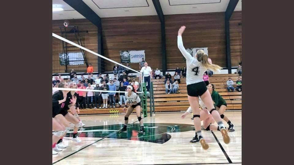 The Umpqua Community College women’s volleyball team got a comeback victory over Clackamas Saturday, winning in five sets in the Northwest Athletic Conference southern region match. Set scores were 25-14, 22-25, 18-25, 26-24, 15-9. The Riverhawks (17-13, 3-6) won the first set easily but then fell behind 2-1 after three sets. They rallied to win the fourth and fifth sets for the win. UCC coach Lacy Pinard said the key to the win was spreading the attack between multiple people. "Balancing our hitting options to all our offense not just one or two athletes," Pinard said. "Keep serving pressured balls and communicating with purpose." Kaitlen Hass had 14 kills, five service aces and 28 digs for the Riverhawks. McKenna Wilson had 10 kills and 18 digs while Megan Davis had 20 assists and 18 digs. Morgan Johnson had 10 kills and Johanna Pope had nine kills. Shayla Limatoc had 31 digs and five assists while Katelyn Crawford added 26 assists for UCC. “We started the second round of league play and the RiverHawks are focusing on one game at a time recovery,” Pinard said. “Last night was a good example of this goal. Many of the athletes had on and off moments, mostly in 2nd & 3rd sets but rallied and recovered.” The Riverhawks moved up to sixth place in the southern region over Clackamas (10-19, 2-7). UCC has seven league matches remaining. The Riverhawks play at Linn-Benton (8-2) next Wednesday at 6:30 p.m. Then they play at Mt. Hood (5-6) next Saturday at 2 p.m. Photo of Kaitlen Hass going up for a kill.