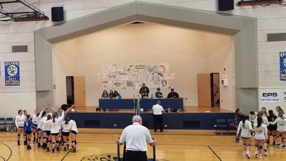 The Glide volleyball team held off Lost River in a five set thriller Saturday in a Southern Cascade League playoff match. The Wildcats win gives them a birth into the state playoffs. Set scores were 16-25, 25-18, 21-25, 25-23, 15-10. The Wildcats (12-11) were led by Ruby Livingston who had 14 kills and nine digs. Kylie Anderson added 12 kills, eight digs and four blocks. Kamryn Aumock had 20 digs while Teagan Triplett had seven kills and 13 digs. “It was an important game for us,” Ruby Livingston said. “I think the pressure of that got to us a bit in the beginning. We all wanted it so bad that we weren’t playing our game. Once we settled down we started playing like we know how.” Glide trailed 0-1 and 1-2 after three sets before winning both the last two sets to rally for the win. “The girls’ nerves were apparent the first set, our error count was high,” Glide coach Stephanie Furlong said. “They picked it up in the second set but Lost River came to play, they were not going to hand it to us.” Glide beat Lost River on Tuesday earlier this week in four sets in the regular season finale before the league playoffs. “The whole night was a battle,” Furlong said. “It was encouraging to see my girls fight for the win. They showed a lot of heart tonight.” Glide will play Tuesday at Bonanza at 5:15 p.m. If the Wildcats win they will host a first round state playoff game and if they lose they will play on the road in the first round. “It’s very exciting for us to be in the playoffs,” Livingston said. “Most of the girls on our team haven’t experienced that and I look forward to what we can accomplish.”