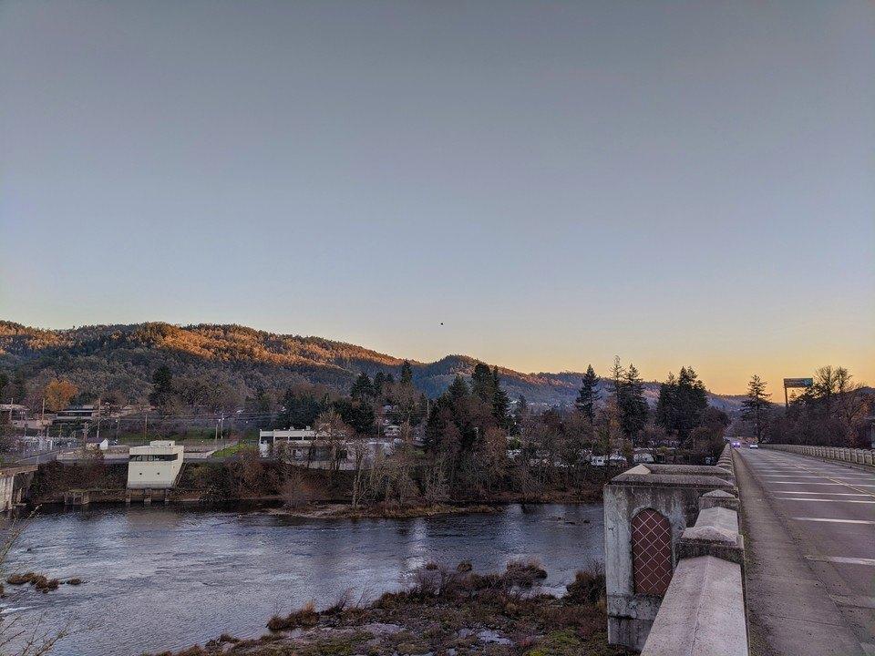 Amazing moment late this afternoon. I was walking around taking some photos of the area we had just cleaned up and walked out onto the bridge to get a better angle. Just then a huge Bald Eagle flew by, soaring down the North Umpqua River as the sun was setting off in the distance. It was such an incredibly beautiful moment! You can barely see the eagle just above the mountain in the middle of the image. 🤙
