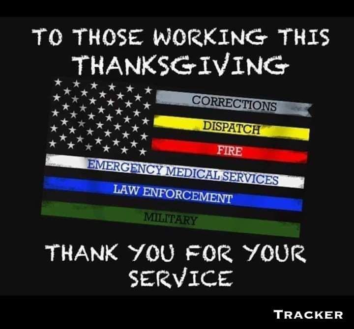 Happy Thanksgiving Everyone! I also want to thank all the first responders, law enforcement officers and everyone else working today, including care givers and medical staff everywhere! We appreciate you!!!