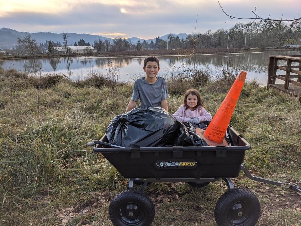 We got a lot of garbage picked up in the area surrounding the Duck Pond this afternoon. The new cart that was donated by Kris and Kirk Riggins was very helpful!