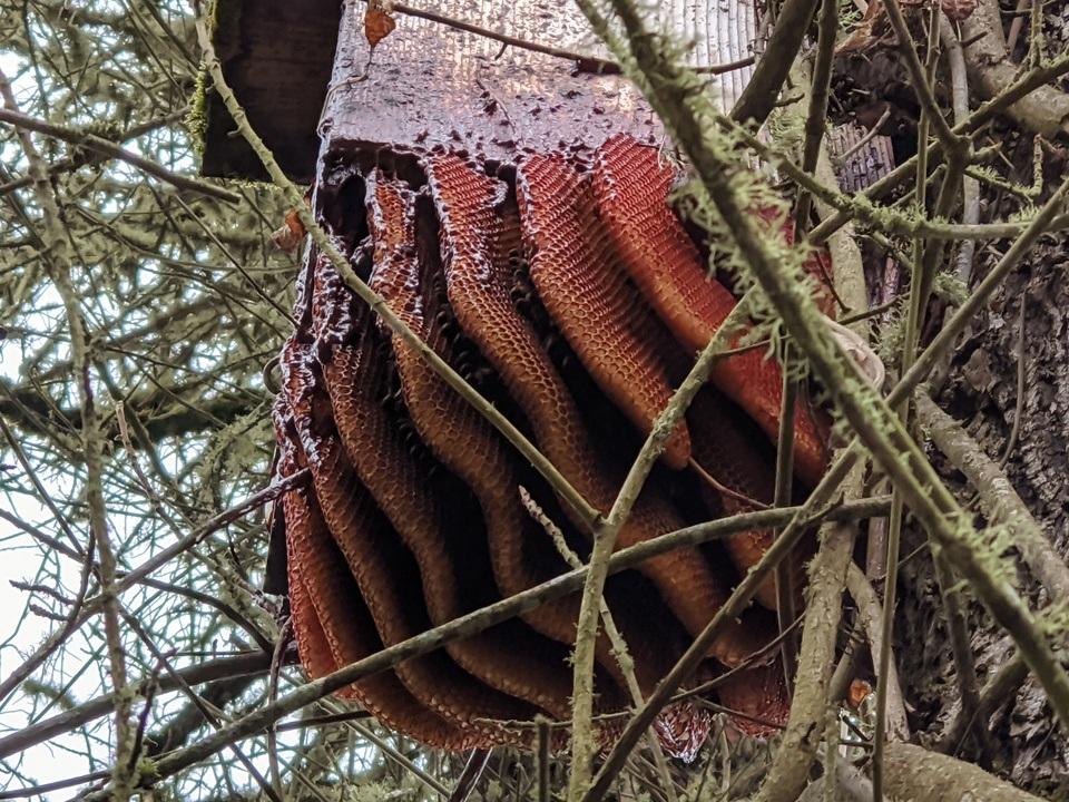 Still a few bees moving around in the beehive at the Stewart Park Natural Area
