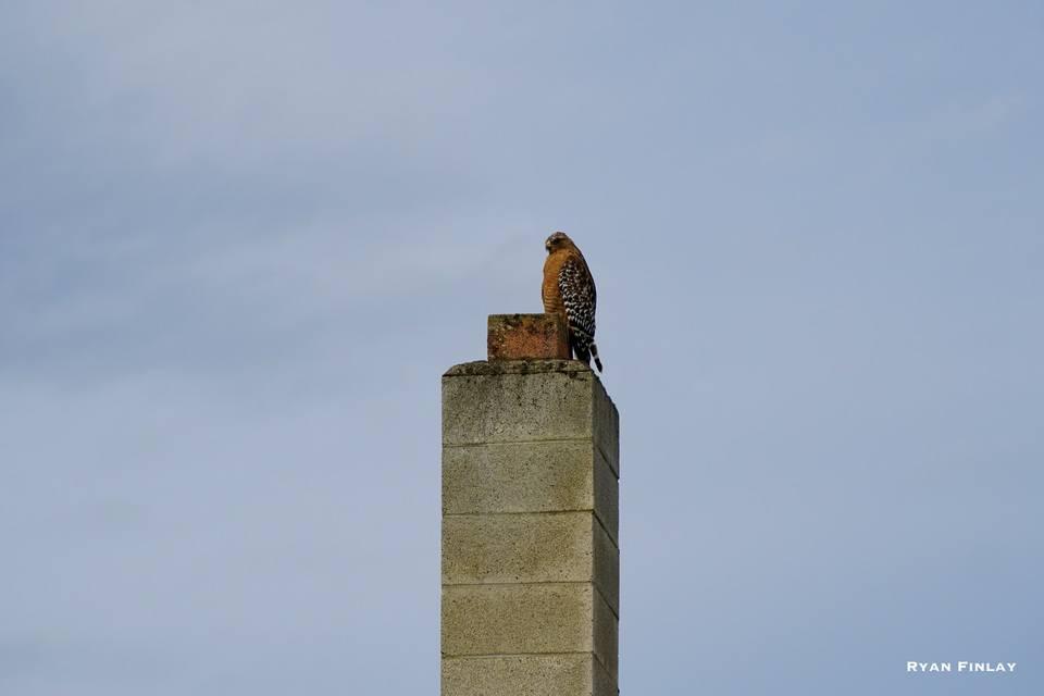 I came across what I believe is a Red Shouldered Hawk in Hucrest this afternoon in Roseburg. It was looking very intently into the tall grass.