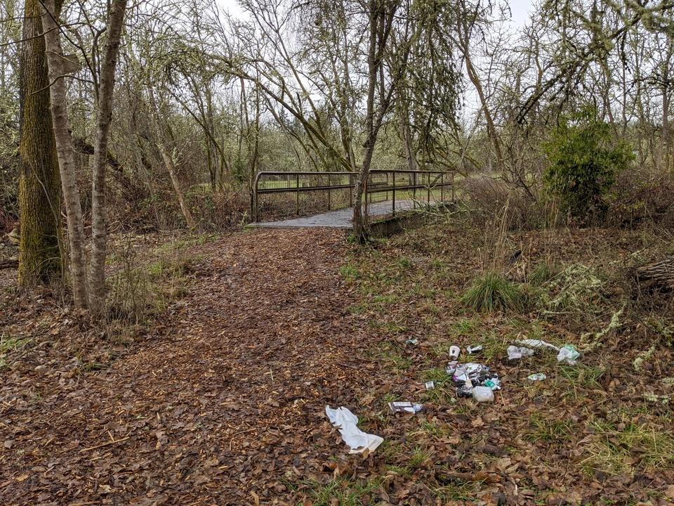 We had one last cleanup this morning at the Duck Pond and Natural Area in Stewart Park before the New Year. We filled up several garbage bags of trash and litter that we deposited in the park dumpster afterwards. Former Roseburg resident Thys Kuitert joined us this morning which was a lot of fun. It's great to have those who grew up in the area be able to come back and help the community out. Kuitert now resides in Sisters Oregon with his wife and their children.