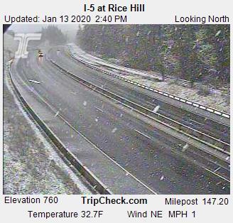 Highway 138 - Closed at Toketee from MP 61 to MP 101 due to downed trees and heavy snow. Diamond Lake area - Near white out conditions make driving in the area very difficult. Oregon 230 - Closed - 100 trees have fallen over the road according to ODOT and another 200 are leaning towards the road. It's going to be several days before the road is opened back up. Several more feet of snow are in the forecast for the area as well. I-5 North at Rice Hill - Snow is falling and some sticking on the sides of the road but the freeway looks pretty clear as of 2:45pm I-5 South at Sexton Summit looks clear and roads in good shape.