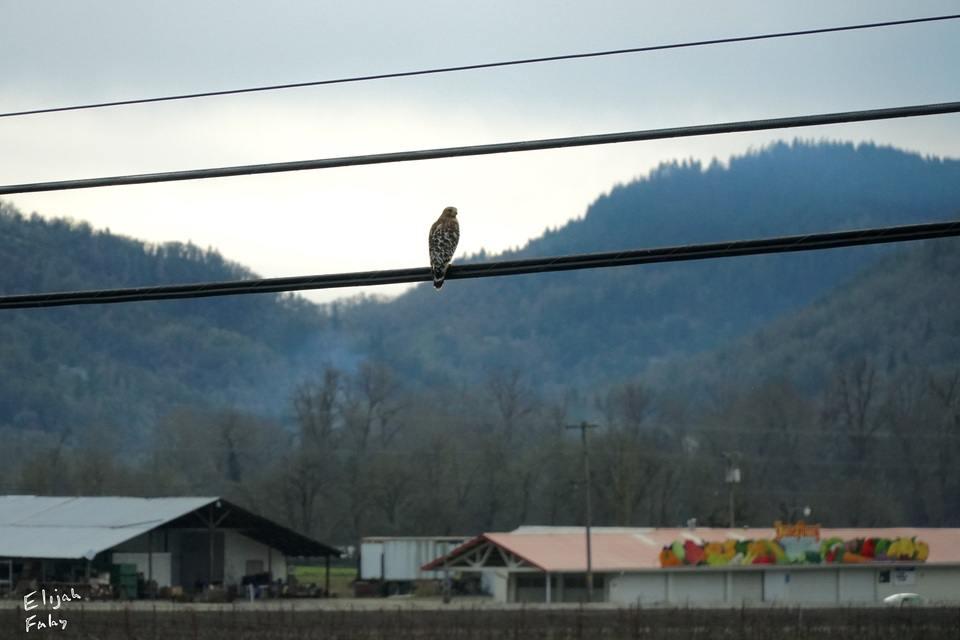 Spotted a Hawk looking out over the vineyards this afternoon with Kruse Farms in the background.