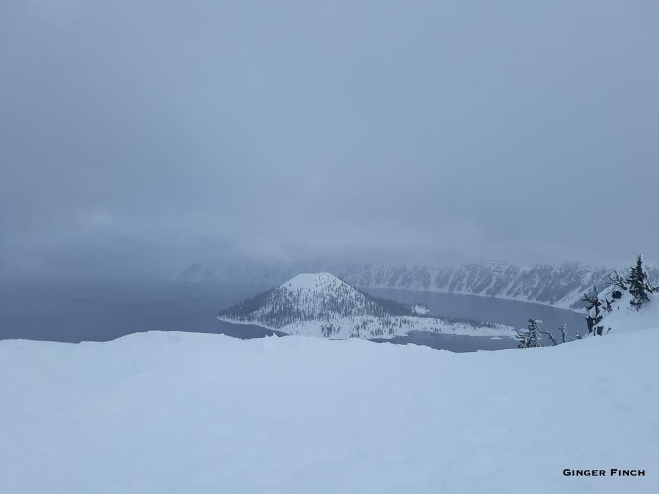 Crater Lake from the North Rim after the most recent snow storm. Photo by Ginger Finch