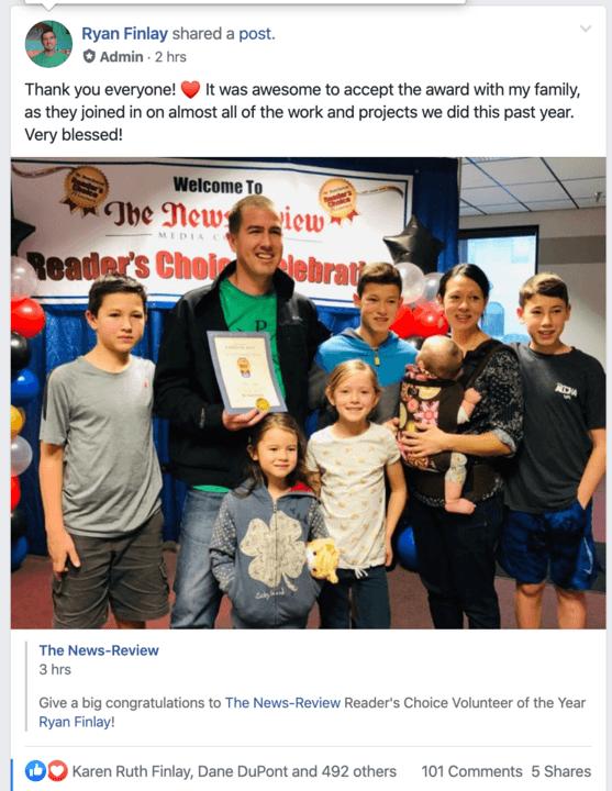 Thank you everyone! ❤️ It was awesome to accept the volunteer of the year award with my family, as they joined in on almost all of the work and projects we did this past year. Very blessed!