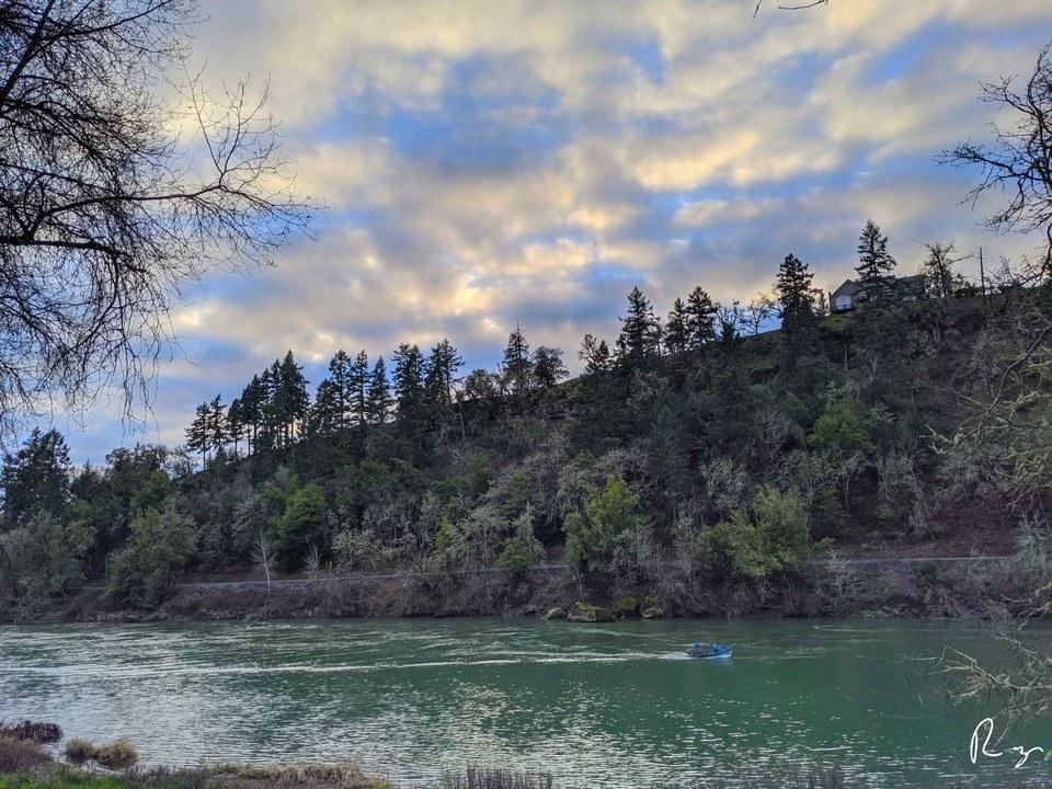 A fishing boat returns to the boat ramp at River Forks Park early this evening.