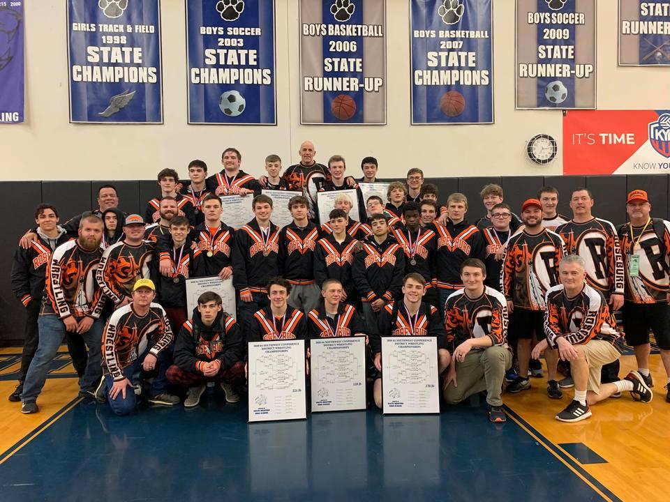 The Roseburg wrestling team won the Southwest Conference District championship Saturday night at South Medford high school. Roseburg finished with 494 points while Grants Pass came in second place with 432. Winners in their respective weight classes for Roseburg were Cameron Cross at 113, Nash Singleton at 120, Kahleb Diaz at 126, Archer Bergeron at 145, Colin Rietmann at 160, Darian Thacker at 170, Rogan Coffman at 195 and Hunter Blix at 220. Roseburg head coach Steve Lander was also voted Coach of the Year in the Southwest Conference. "We're excited for all of our qualifiers and looking forward to them competing at State," Lander said. "I've always viewed coach of the year as Coaching staff of the year. We have a lot of people with a hand in our success, lots of help and a super fan base. Thanks to everyone for your support, time and energy!" In total Roseburg qualified 16 wrestlers for the State tournament. The Indians will now prepare for the state tournament on February 28 and 29 at Veterans Memorial Coliseum where they will look to win their seventh straight state championship. Photo courtesy of Kim Root.