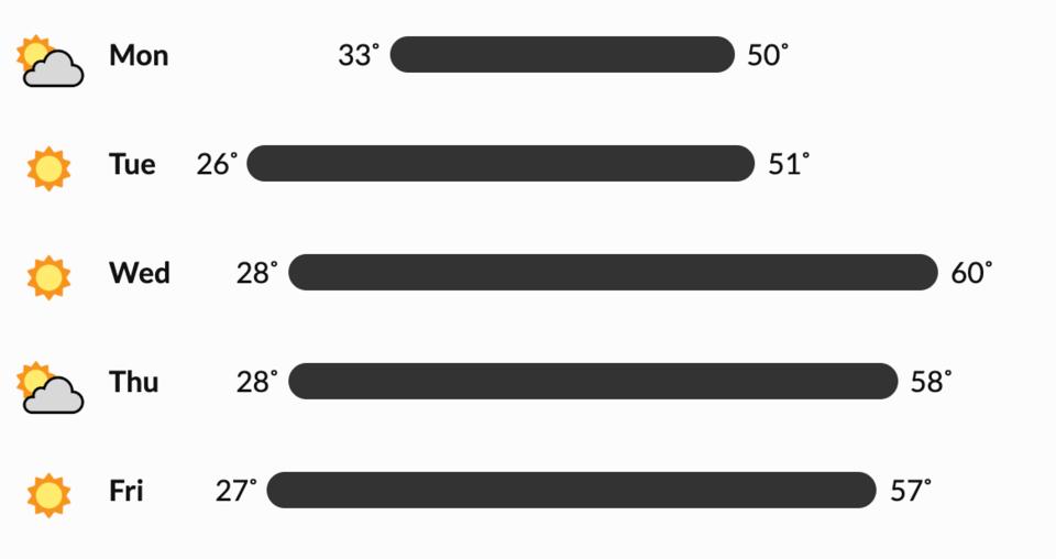 Lots of sunshine and drier weather is in store for the Douglas County area this next week. By Wednesday, temperatures could reach up into the 60's. Temperatures at night and early in the mornings will still be quite cold, even reaching into the high 20's.