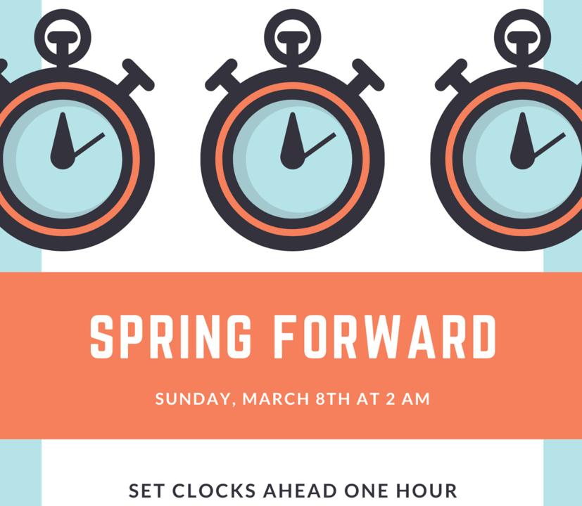 Time to Spring Forward. Before you go to bed tonight set your clock ahead one hour!