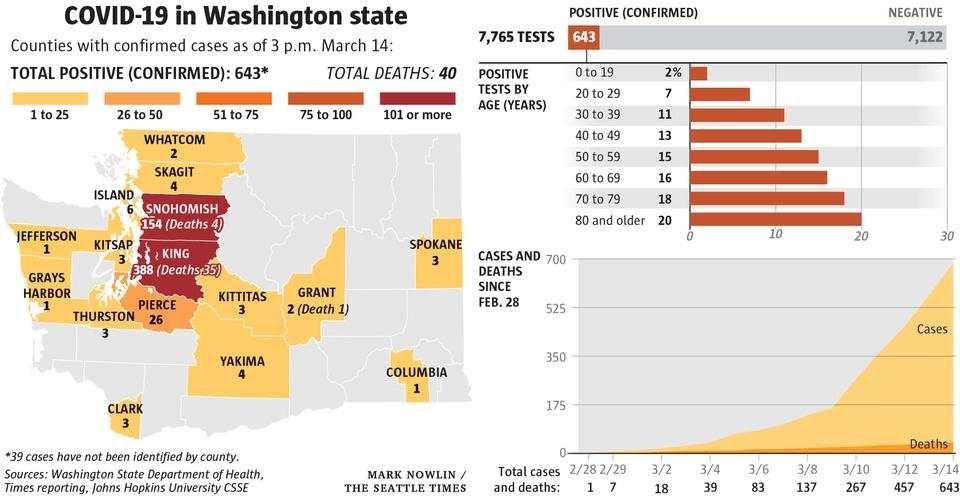 In very sad news tonight Oregon officials have announced that a 70 year old veteran has passed away four days after contracting the Coronavirus. The man was living at the Portland Veterans’ Affairs Medical Center. Oregon now has a total of 36 people who have been diagnosed with COVID-19, after the Oregon Health Authority announced six new presumptive positive cases of the novel coronavirus as of 10:30 a.m. today. OHA confirmed 3 new cases in Washington County, 2 new cases in Deschutes County, and 1 new case in Linn County. The Linn County case is at the Veterans’ Home in Lebanon. One of the Deschutes County cases involved travel to a country where the virus is actively spreading. The remaining cases are believed to be community spread. As a reminder, due to a lack of testing, the actual number of cases throughout the state is estimated to be significantly higher. Washington The state Department of Health announced 60 new cases Saturday, bringing the state total to 643. A total of 40 people in Washington state are known to have died from the disease.
