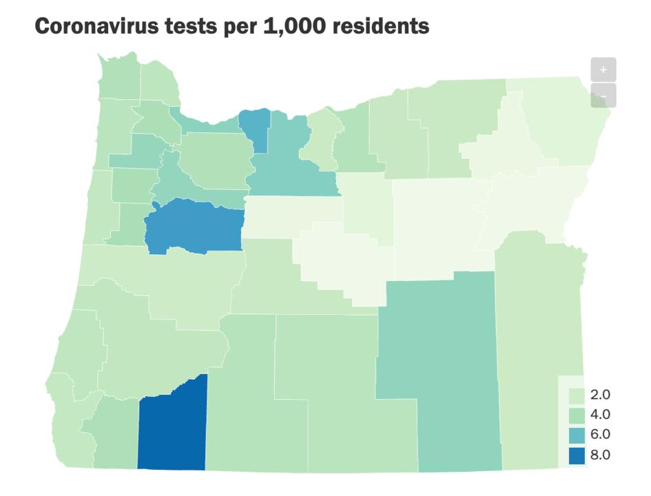 Testing per 1,000 people in the first map, and confirmed cases in the second as of today.