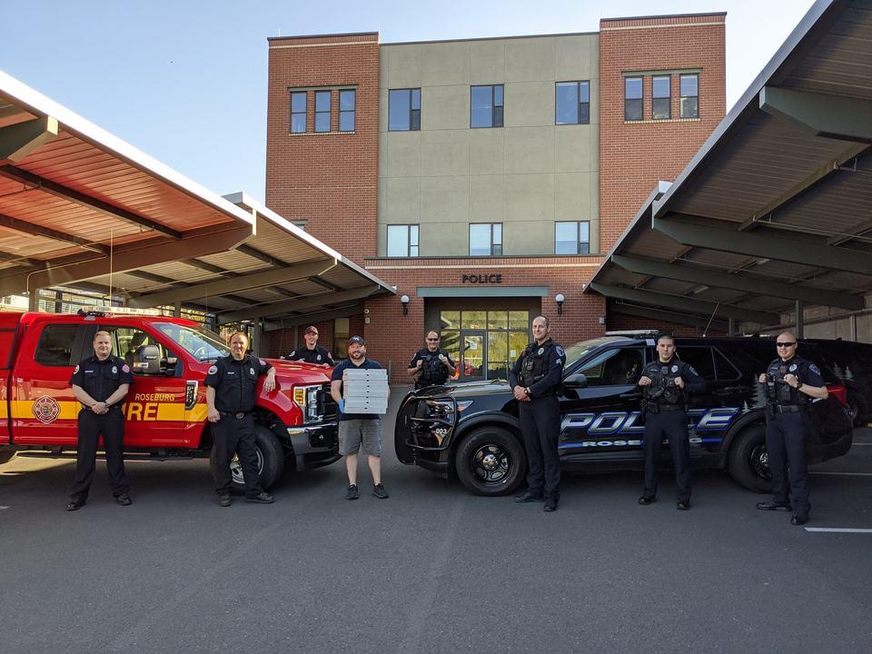 We had another awesome Feed It Forward delivery tonight this time to the Roseburg Fire Department and Roseburg Police Department. Again I want to say thank you to Sam gross of Loggers Tap House, Aviva Health and everyone in the community that has supported this initiative!