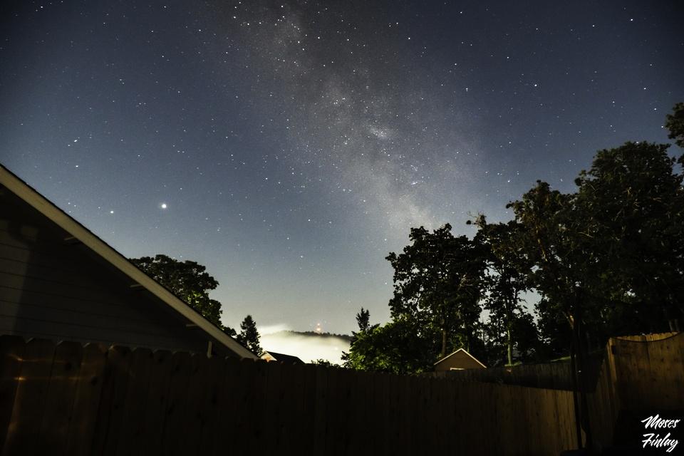 Early this morning at about 3:30 AM, I captured this shot of our Milky Way Galaxy. This photo was taken from our backyard facing Southeast. You can also see Jupiter and Saturn to the left. I'm pretty happy with how this turned out and I'm looking forward to taking another one under darker skies 🙂