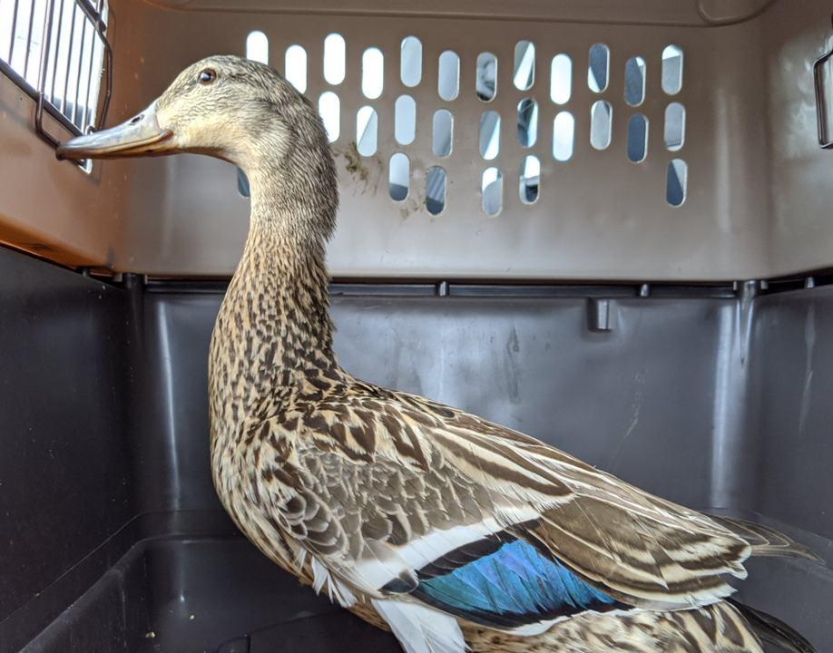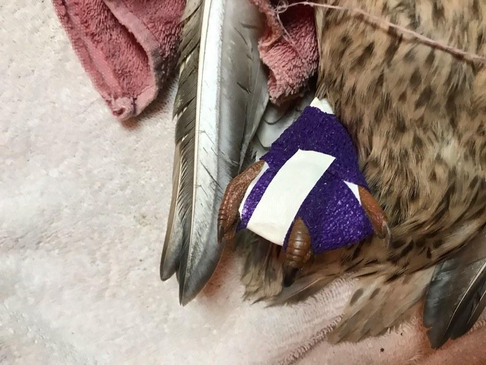 The past couple days we've been working on catching this injured female mallard at the duck pond. Late this afternoon Abraham finally captured it and we got it to one of the rehabbers at Umpqua Wildlife Rescue. It has a pretty good case of bumble foot. Thank you to Ashley for calling it in and letting us know about it! One way we can help the birds at the duck pond is by feeding them less (or not at all) which will attract less birds to the pond and improve the water quality. The high bacteria levels in the water at the pond is likely contributing to the number of cases of bumble foot there. 🦆💚 Update: Charnele has already worked on the ducks foot today. Some sort of blunt force trauma caused the ducks bone to poke through the bottom of its foot so it was just dragging the bone on the ground. The little piece actually ended up just breaking off, which was good, as now Charnele was able to clean up the wounded area and get an antibiotic ointment on it and bandaged it all up. This will be done twice a day until the ducks foot heals up. She should recover! We will keep you all posted, and big thanks to Charnele and Laura for their help! (I added photos they just sent in)