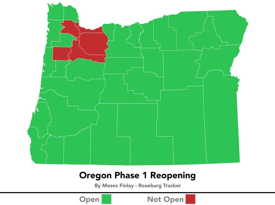 28 Oregon counties have been approved for Phase 1 reopening including Douglas County by Governor Kate Brown Thursday morning. 33 counties applied to open up their counties and the Oregon Health Authority reviewed each counties application with the governor. 28 counties have been approved by the Governor. 3 haven't applied yet. 2 applied, got denied. Marion and Polk. Marion - hospitalizations had increased. High % cases with no identified source from infections. (community spread) Polk - Hospitalizations increased, and cases could not be traced. Meaning community spread in both locations. They can be reviewed once a week. Jefferson, Umatilla, Morrow still need to provide more info to the state. So they are pending. “This is good news,” Governor Brown said. “There are two counties that applied for but don’t meet the criteria Marion and Polk Counties. The counties pressed for every county to reopen. When it comes to the health and safety of Oregonians the buck stops here.” Limited reopening for phase 1: Restaurants and bars open for sit down service if they keep 6 feet distancing, limit parties to a max of 10 people, close on site consumption at 10pm., all employees must wears mask. Barbers and salons may open in these counties as long as they screen clients prior to service, limit visits to scheduled appointments, record client lists, maintain physical distance between clients and require providers to wear face coverings. Gyms may open if they can maintain of physical distance of six feet between gym users, close all showers and pools, and have very strong cleaning protocols in place. In persons gatherings up to 25 people are allowed for any purpose as long as physical distancing is maintained in the counties that have been granted Phase 1 reopening. “Some will say this is still being too restrictive while others will say we're moving too quickly to starting the economy,” Brown said. “If I tried to please everyone nothing would get done. I’m focused on the health of all Oregonians. Counties must stay in Phase 1 for three weeks. If a spike occurs that cannot be addressed by contact tracing and quarantine, it could lead back to stay home, stay safe orders. Everyone across the state should practice physical distancing and wear face masks.” “We wear these masks to stay on the lookout for ourselves and our neighbors.” Brown said. Notes by: Josh Gaunt