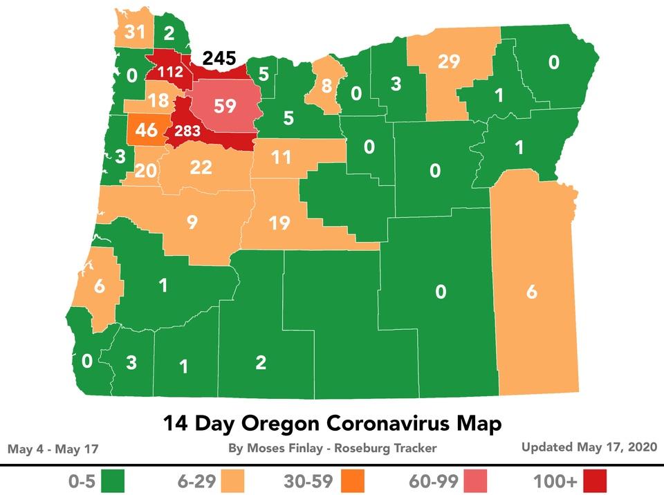 DPHN confirmed one new case of COVID-19 in Douglas County this weekend. There also was an error in OHA reporting cases in Douglas County the other day. This brings the total number of positive tests to 25, as of today, May 17. Testing continues, as DPHN has been holding 2-3 clinics a week and hospitals, urgent cares and clinics continue to test. Additional testing technologies such as the Abbot ID Now machine, available locally, have also shortened the wait time for results. Twenty- five people have tested positive in the county and twenty-three of those twenty-five have recovered. DPHN defines recovery as an end to all symptoms after a positive test for COVID-19. The state’s death toll from COVID-19 is unchanged from yesterday and remains at 137, the Oregon Health Authority reported at 8 a.m. today. Oregon Health Authority reported nine new confirmed cases and three new presumptive cases of COVID-19 as of 8 a.m. today, bringing the state total to 3,623. The new confirmed and presumptive cases reported today are in the following counties: Deschutes (1), Douglas (1), Lincoln (1), Marion (3), Multnomah (5), Polk (1). Due to data reconciliation, a confirmed case in Clackamas County was determined not to be a case. The number of cases between 40-49 was reduced by one as a result of this change.