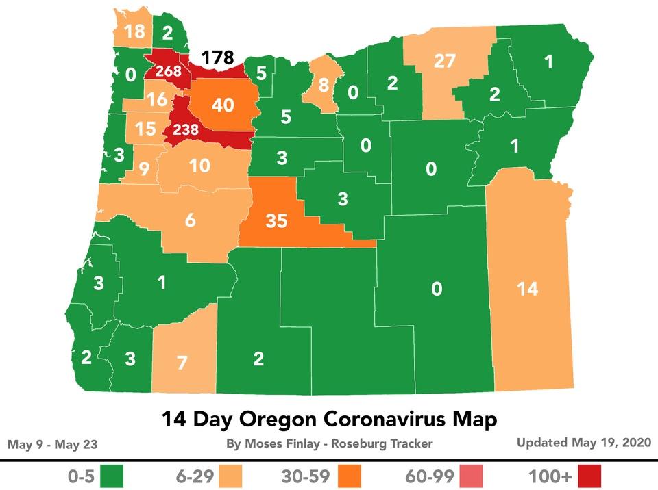 Saturday, May 23, 2020 and as of 12:00 pm today, there are NO new cases of COVID-19 in Douglas County. The total number of positive cases in Douglas County remains at 25. Testing continues, as DPHN has been holding 2-3 clinics a week and hospitals, urgent cares and clinics continue to test. Twenty-five people have tested positive in the county and twenty-three of those twenty-five have recovered. DPHN defines recovery as an end to all symptoms after a positive test for COVID-19. DPHN continues their epidemiologic investigations, identifying individuals who may have had close contact with individuals that have tested positive for COVID-19, advising and supporting quarantine. The majority of the individuals who have tested positive earlier have now recovered. The first positive COVID-19 case in Douglas County was announced on March 8, 2020. Thanks to the great work that Douglas County has done social distancing and staying home, we’ve had 25 cases in 76 days. The state’s death toll from COVID-19 is unchanged and remains at 147 as of 12:01 a.m. today, the Oregon Health Authority reported today. Oregon Health Authority reported 28 new confirmed cases and seven new presumptive cases of COVID-19 as of 12:01 a.m. today, bringing the state total to 3,888. The new confirmed and presumptive cases reported today are in the following counties: Clackamas (2), Clatsop (1), Crook (3), Deschutes (2), Jackson (1), Jefferson (1), Lane (1), Marion (10), Multnomah (4), Umatilla (2), Wallowa (1), Washington (6), Yamhill (1).