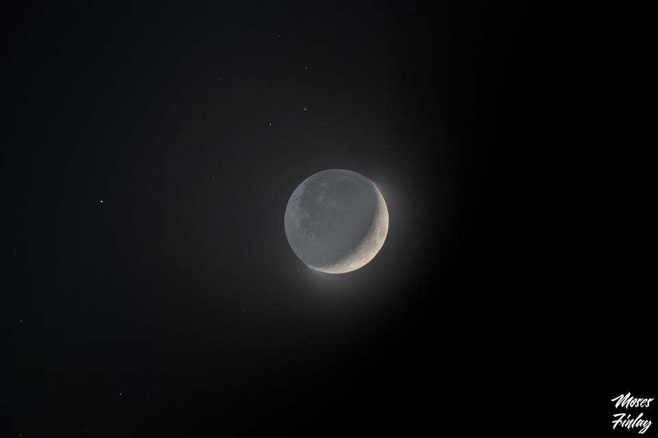 Here is an HDR shot of the moon tonight. In this photo, I took multiple exposures and combined them to see the dark and bright side of the moon. This is a tracked shot on my new mount, and I'm pretty happy with the results as this is my first attempt.
