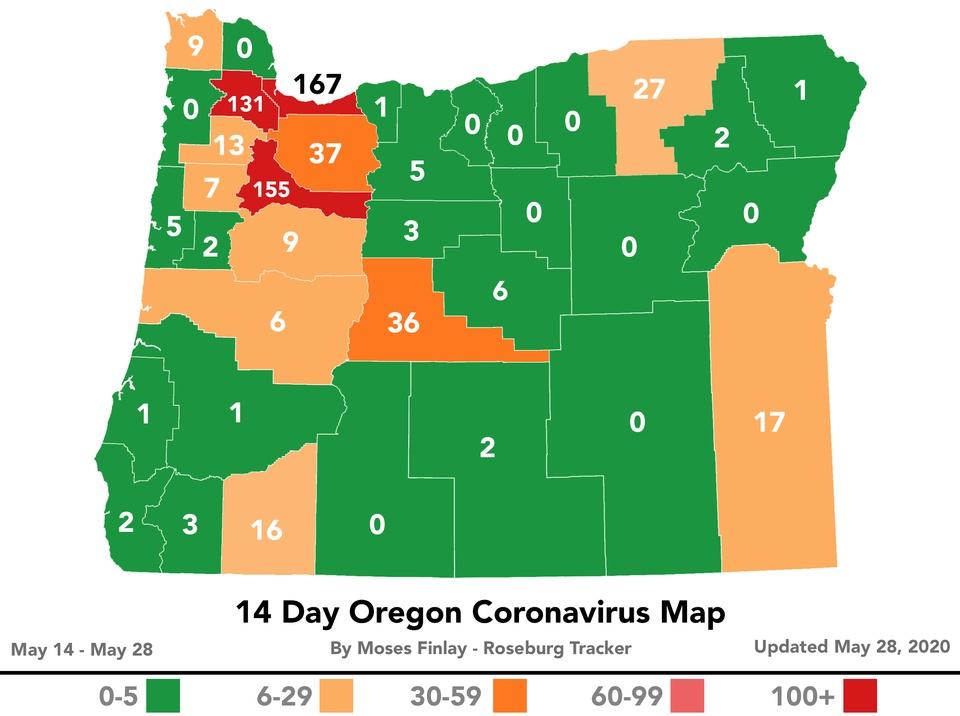 As of 12:00 pm today, there is ONE new case of COVID-19 in Douglas County. The total number of positive cases in Douglas County is now at 26. Testing continues, as DPHN has been holding 2-3 clinics a week and hospitals, urgent cares and clinics continue to test. Twenty-six people have tested positive in the county and twenty-three of those twenty-six have recovered. DPHN defines recovery as an end to all symptoms after a positive test for COVID-19. “Although our cases have been fairly steady for several weeks, we expected to have new cases in Douglas County. In addition to our regular testing clinics, epidemiological contact tracing and isolation support for our positive cases, we have also been spending the last several weeks preparing for a possible surge. We are more prepared now than we were at the beginning of this pandemic and will continue to do the vital and important public health work of providing locally relevant correct information, testing, and epidemiology investigations.” Dr. Bob Dannenhoffer DPHN continues their epidemiologic investigations, identifying individuals who may have had close contact with individuals that have tested positive for COVID-19, advising and supporting quarantine. The majority of the individuals who have tested positive earlier have now recovered. The first positive COVID-19 case in Douglas County was announced on March 8, 2020. Thanks to the great work that Douglas County has done social distancing and staying home, we’ve had 26 cases in over 80 days. COVID-19 has claimed three more lives in Oregon, raising the state’s death toll to 151, the Oregon Health Authority reported at 12:01 a.m. today. Oregon Health Authority reported 49 new confirmed and presumptive cases of COVID-19 as of 12:01 a.m. today bringing the state total to 4,086. The cases reported today are in the following counties: Clackamas (4), Deschutes (1), Jefferson (1), Malheur (5), Marion (11), Multnomah (10), Umatilla (2), Wasco (1), Washington (12), Yamhill (2). Seven of the new total cases are related to the Townsend Farms outbreak. Note: Due to data reconciliation, the Lincoln County case count decreased by one. A confirmed case had been counted twice. Oregon’s 149th COVID-19 death is a 73-year-old woman in Clackamas County, who tested positive on May 8 and died on May 16 at her residence. She had underlying medical conditions. Oregon’s 150th COVID-19 death is a 73-year-old man in Multnomah County, who tested positive on May 6 and died on May 26 at Providence Portland Medical Center. He had underlying medical conditions. Oregon’s 151st COVID-19 death is a 72-year-old man in Polk County, who tested positive on May 1. Additional information about his death is still pending. An update will be provided when we receive additional information. For the latest numbers from the State of Oregon - https://public.tableau.com/profile/oregon.health.authority.covid.19#!/vizhome/OregonCOVID-19TestingandOutcomesbyCounty/OregonsCOVID-19TestingandOutcomesbyCounty?:display_count=y&:toolbar=n&:origin=viz_share_link&:showShareOptions=false