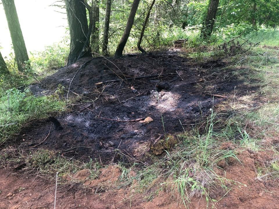 (DFPA) Crews from the Douglas Forest Protective Association and the Myrtle Creek Rural Fire Department suppressed a small fire Friday morning about 5 miles east of Myrtle Creek, near Pack Saddle Road. Crews arrived on scene of the fire shortly after 10:00 am and quickly suppressed the blaze. A preliminary fire investigation indicated that the fire may have been caused by an illegally dumped mattress that was lit on fire. The Pack Saddle Fire burned approximately 1/100th of an acre. Photo via DFPA