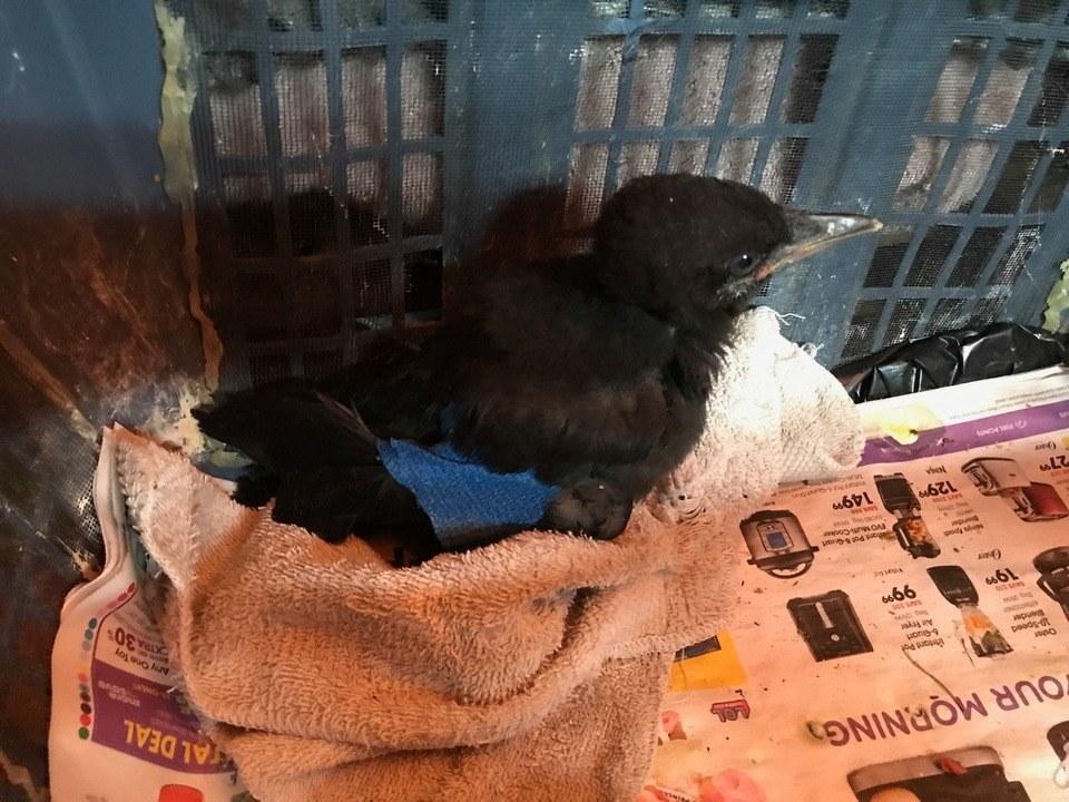 This is a little fledging crow that we picked up from our friends house this afternoon. It got caught by a dog and at least has a broken wing. It was a sad scene when we showed up as the mama crow was being very protective of it and warning it as we approached. It's now with Charnelle, one of the Umpqua Wildlife Rescue rehabbers. It will be on some pain meds and fluids tonight and hopefully get an x-ray soon and it's wing fixed up. Crows have very tight knit family structures. The crow parents raise their young and then those young will hang around the nest for 4-5 years and those younger crows will even help raise the next generation. Eventually, they will go off and start their own family. They are also very smart. If you ever come across an injured crow, please message me or call Umpqua Wildlife Rescue and we will get it picked up and rehabbed. Also, update on the last duck we rescued from the Duck Pond that had bumble foot. It was successfully rehabbed and released back into the wild. 🦆👍