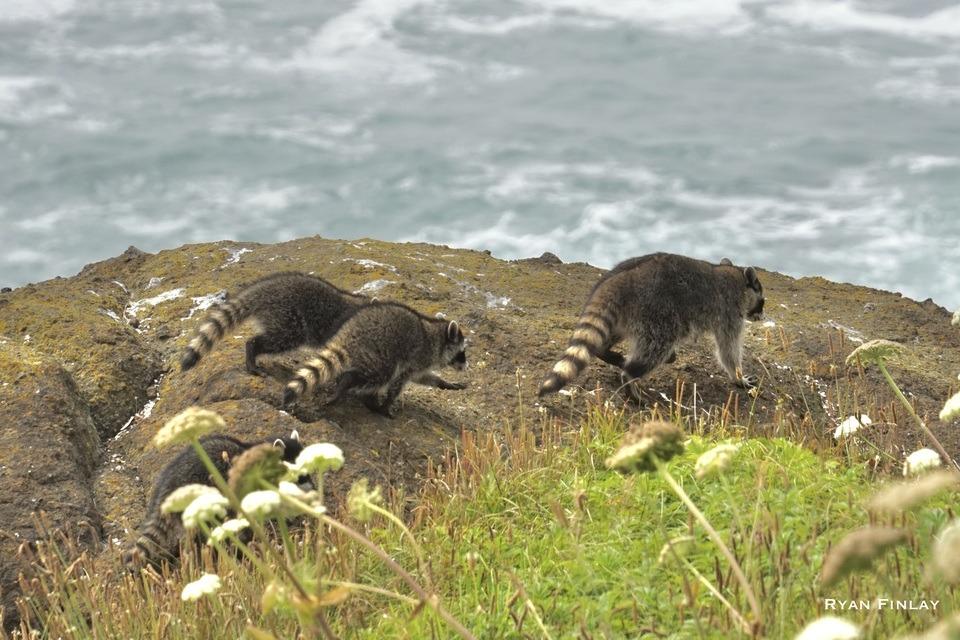 As I sat down along the edge of a cliff overlooking the ocean this afternoon, a mama Raccoon and her three babies were walked by right in front of me!
