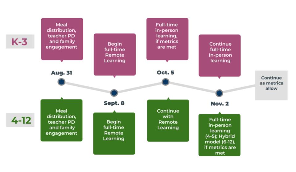 (Roseburg School District) The Roseburg Public Schools Board of Directors on Thursday approved the district's plans for fall 2020-2021 that include several days of preparation and training for students, staff and families to successfully kick off Comprehensive Remote Learning. The plan also includes target dates for reopening to in-classroom learning. The plan is based on mandates and guidance from the Oregon Health Authority and the Oregon Department of Education, as well as considerations specific to the community and district. Details of the current plan follow: The school year will begin on Aug. 31 with training for and implementation of Comprehensive Remote Learning for all grades. Meal distribution will begin at this time, with details on bus delivery routes and pickup sites to come. Student instruction will begin remotely on Sept. 8. Between Aug. 31 and Sept. 8, our teachers will participate in rigorous professional development that will include meetings to plan school year goals, cover safety protocols and plan instructional strategies; training with Google Classroom for elementary staff and Canvas Learning Management System for secondary staff; and focusing on engagement strategies, social emotional learning and parent/family communications and support. Teachers will connect with students and families from Aug. 31 to Sept. 8 to provide support and information about what Comprehensive Remote Learning will look like. The district believes that this time is critical to ensuring our students are able to make the most of the Comprehensive Remote Learning model. For students in kindergarten through third grade, our hope is to return to in-classroom learning full time on October 5, 2020, if the public health metrics are met. The mandated metrics for these grade levels are less stringent than those required for older students, and the district is planning for a scenario in which Douglas County will have consistently met these thresholds. For students in grades 4-12, we plan to reopen on November 2, 2020, if the public health metrics are met. Students in fourth and fifth grade will return to full-time, in-classroom learning. Students in grade 6-12 will begin a hybrid model (mix of remote and in-person learning). The November 2, 2020 date aligns to the end of the first quarter. Families who choose to remain with remote learning later in the Fall, as well as any families who are interested in homeschooling, can be assured that students will continue to receive high-quality, consistent instruction from a licensed Roseburg Public Schools teacher. Visit our 2020-2021 Reopening page for more details. https://www.roseburg.k12.or.us/fs/pages/4206