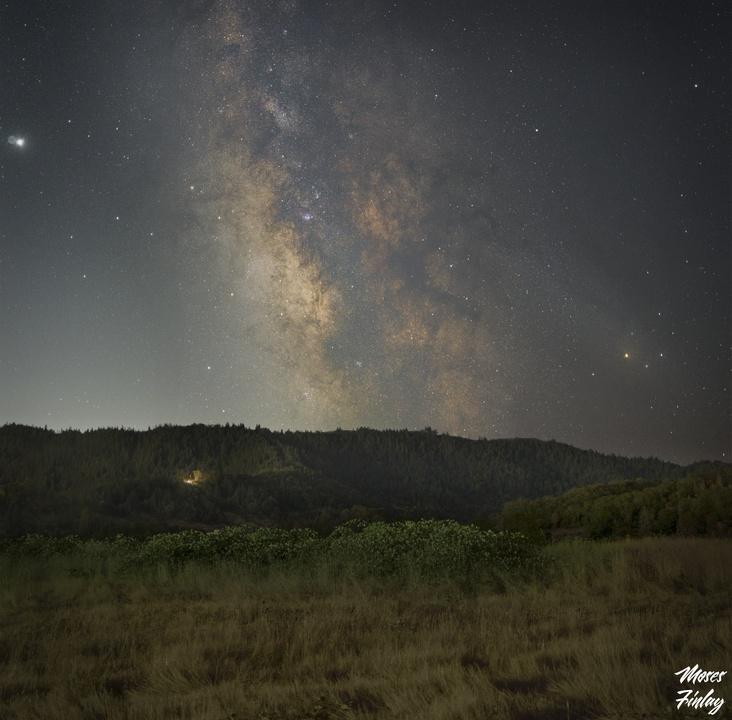 The Milky Way is a really spectacular part of the night sky! On the left, Jupiter stands out very bright, and in the core of the Milky Way, you can see the pink lagoon nebula. I took this shot last night in Roseburg around 10:30 pm. It was an incredible experience especially since Perseid meteor shower is in full effect now!