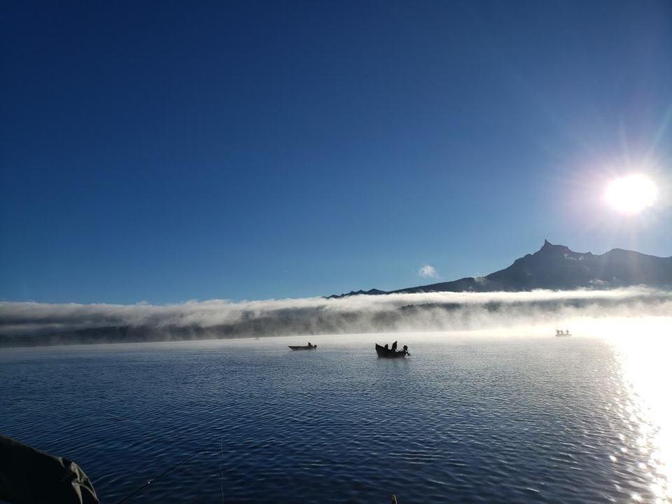 Incredibly beautiful photo of the fishing boats out on Diamond Lake this morning! Photo by Chris Baumgartner