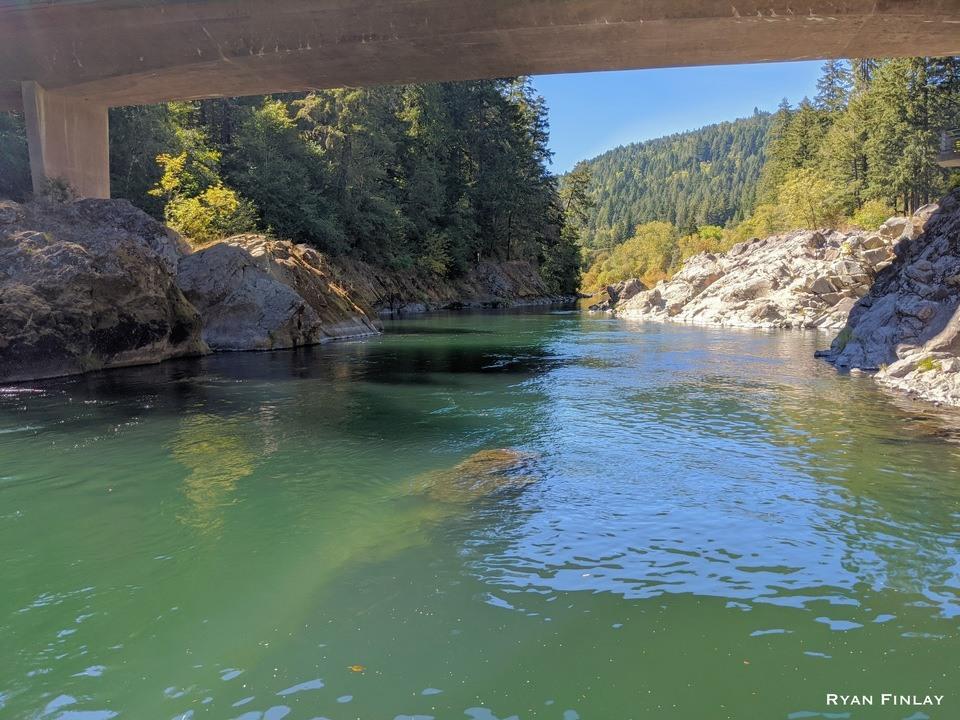 Looking down the North Umpqua River from below Swiftwater Bridge. ๐
