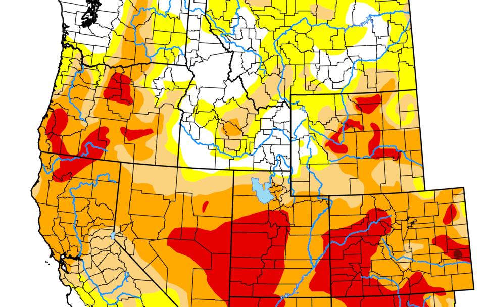 Little or no rain was observed region-wide this past week. This is a relatively dry time of year in many areas, especially in California, but a weak monsoon season and periods of excessive heat have led to widespread severe to extreme drought in a large area covering northern and eastern New Mexico and most of Arizona, Utah, Nevada, northern California, Oregon, and central Washington. Only eastern and western Washington, central Idaho and the Panhandle, central and west-central Montana, southwestern California, and part of central New Mexico are free of dryness and drought as of this writing. Wildfires continued to scorch parts of the region, although fires spread more slowly recently in northern California than during the prior few weeks. Temperatures for the next week or so are going to be in the 95-103 degree range. Via the National Drought Mitigation Center and NWS