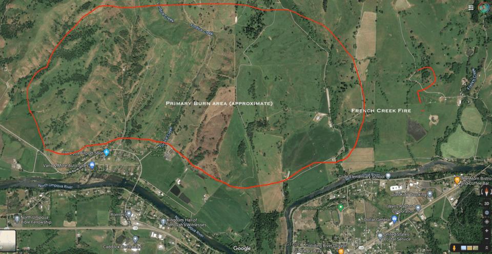 I’ve been up all night out covering the French Creek Fire in Glide so I’m wiped. But I want to do one more update before I head to bed this morning. I’m not sure about the exact time, but somewhere in the 12:30 am range a fire started out along French Creek in Glide. It burned westward from there and is now past river shore drive along North Bank Road. There are a few dozers and several fire trucks working the fire in that area right now. Updated: As of 8:15 am, the size of the fire is estimated in the 450-acre range now. A level three evacuation notice was issued for residents in the North Bank Road area. I’m sure more evacuations will take place as the day progresses. Anyone along the North Umpqua River, either side from Glide towards Roseburg should be paying attention to how this fire progresses. No school today in Glide. Smoke is going to be bad in Roseburg and the surrounding areas today. Besides the French Creek Fire, the McKenzie Fire outside of Eugene is sending a lot of smoke our way as well, depending on wind direction. Try to stay inside or wear a good mask. The air is going to be really bad. Tuesday and into Wednesday is going to be absolutely terrible weather conditions to have a fire. High winds with even higher gusts are to be expected today. This is going to make it very difficult to control the fire. Stay safe everyone!