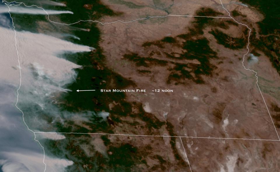 The Star Mountain Fire has blown up over the past 3 hours. The first photo is from around 12 noon today, and the last is from around 3 pm or so.