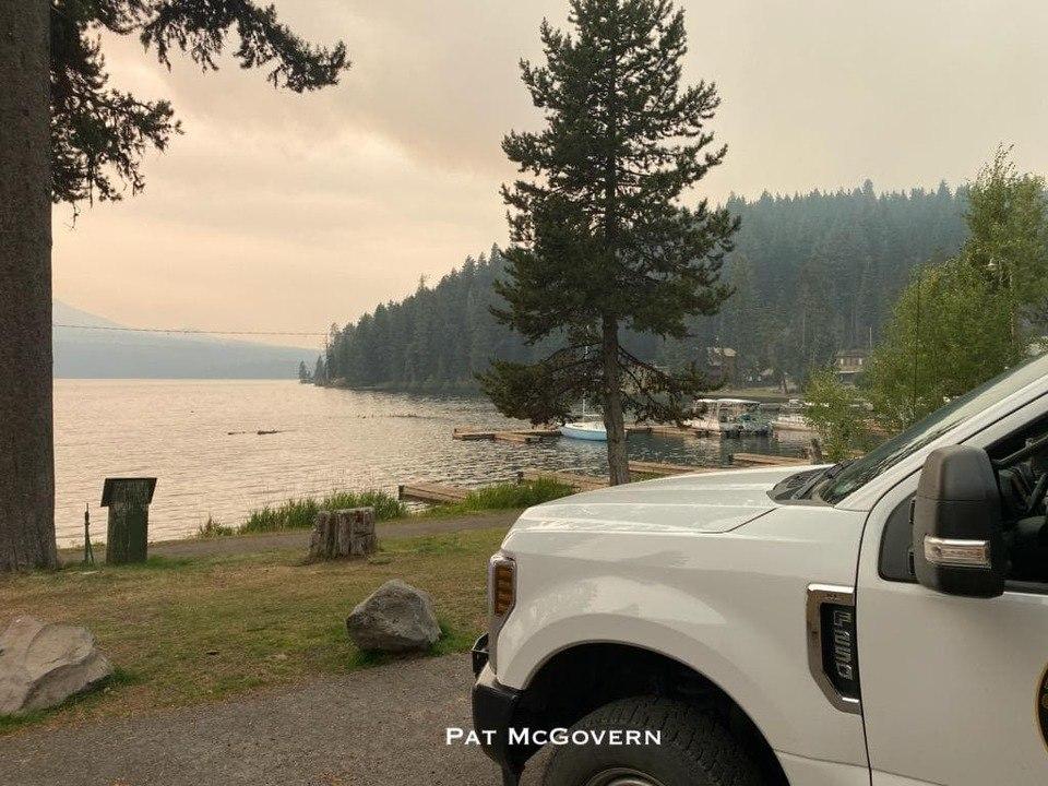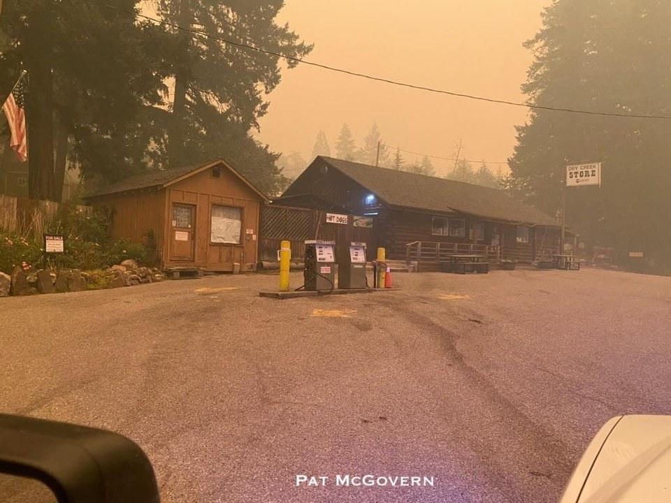 I've just received photos taken just a few minutes before 6 pm this evening showing the Diamond Lake Lodge still standing! Firefighters and crews are working tirelessly to save the area up there. Thank you for all your work! Also, the Dry Creek Store still stands! Pat McGovern just sent in these photos just moments ago. "Its (the fire) just north of the inner tube hill in the trees. They have a brush rig and at least one tender watching it, but it does not appear to be moving right now and a lot of the fire has burned itself out." McGovern said.
