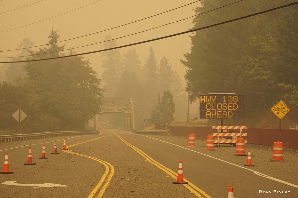 (ODOT) GLIDE – Oregon 138E (North Umpqua Highway) is expected to remain closed between Glide and U.S. 97 for at least a week due to hazardous conditions related to heavy winds and local wildfires. Over the past three days, the Archie Creek Fire has expanded to more than 115,000 acres, mostly to the north of the North Umpqua River. The highway is also located north of the river. A second fire is located near Diamond Lake. Trees, rocks and debris have fallen into the roadway in several locations, leaving some areas inaccessible. Several sections of guardrail have been destroyed by the fire. Signs and utility poles have also been destroyed. More than a hundred trees are in danger of collapsing onto the roadway. The fire has weakened slopes, posing a risk of landslides throughout the coming fall and winter. Bridges will need to be inspected for damage. ODOT is developing short- and long-term plans to address these hazards. Over the next several days, ODOT will monitor the fire and work with emergency services so that fire crews can maintain access to the area. As the fire moves away from the highway, ODOT will remove debris from the roadway in an effort to open the highway to at least a single lane of traffic. This may involve flaggers and pilot cars. The third phase will likely begin later this month, when the fire is more contained, and continue for several weeks or months. This will involve removing hazard trees and addressing weakened slopes. We anticipate frequent lane closures throughout the fall. Up-to-date information will be posted on www.TripCheck.com. Emergency responders and evacuees have priority during this emergency. Other motorists are advised to avoid the area. Do not put yourself at risk by using forest roads to get around fire closures. For more information, contact ODOT Public Information Officer Dan Latham at 541-817-5200 or Dan.Latham@odot.state.or.us.
