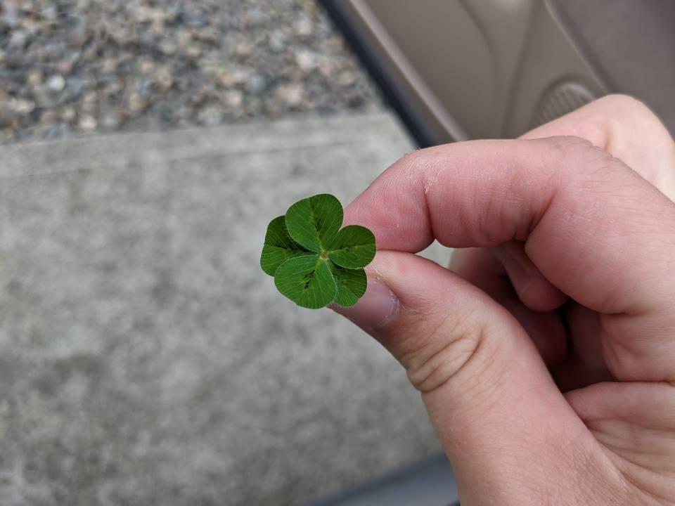 My daughter casually walked up to me and showed me a five leaf clover that she found in our front yard. The interwebs says that only 1 in 20,000 turn out like this. I've never even found a four-leaf clover šš