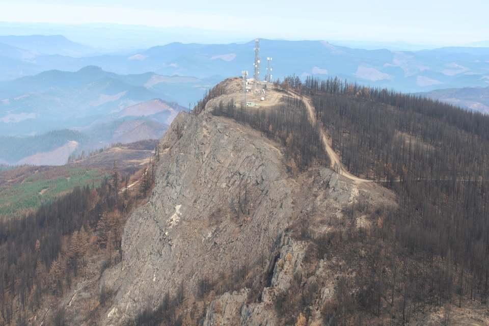 (DFPA) A local Type 3 Incident Management Team led by the Douglas Forest Protective Association remains engaged on the Archie Creek Fire with operational control over all the private, county and state lands within the footprint of the fire. Of the 131,542 acres that were blackened by the fire, DFPA is currently responsible for 64,836 acres. The fire remains 94% contained. DFPA currently has 23 people assigned to the incident, including seven engines and a bull dozer. DFPA’s primary mission includes monitoring and patrolling containment lines, back hauling supplies and equipment that are no longer needed on the fire lines and completing necessary fire suppression repair projects on private lands. DFPA personnel are working closely with the industrial landowners who were impacted by the fire, many of which are in the process of accessing their lands and starting salvage operations and prepping for reforestation projects. DFPA is also coordinating efforts with our federal partners and Northwest Team 12 who are managing fire operations on the public lands within the Archie Creek Fire. Photo shows Mt Scott up above Glide