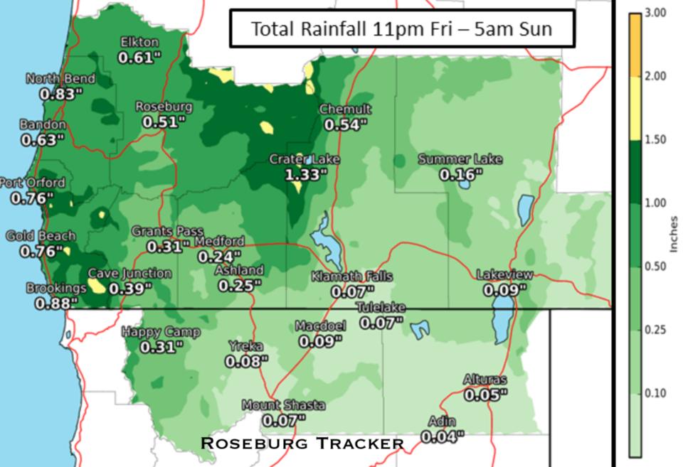 Lots of weather changes ahead for Douglas County starting this Friday night. First temperatures are going to drop to a high in the low 60's on Saturday with a low in the high 40's. The smoke situation in Douglas County should start improving today into Friday and even more over the weekend when the rains arrive. Currently, the AQI is at 91 as of 4 pm. https://www.airnow.gov/?city=Roseburg&state=OR&country=USA Rain should arrive Saturday morning with areas in Douglas County getting 1/2 inch or more over the weekend. Right now the forecast is not calling for intense rain so no flash flood warnings or debris flows are expected. Roseburg might get a bit more rain again on Sunday as well. For the detailed forecast discussion from the NWS in Medford: https://www.wrh.noaa.gov/total_forecast/getprod.php?new&prod=XXXAFDMFR&wfo=mfr