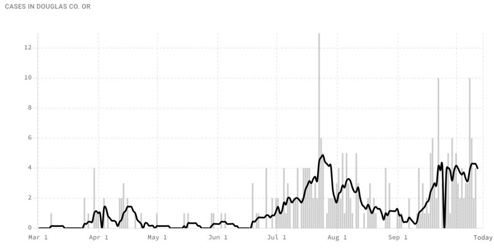 A COVID-19 outbreak at a Roseburg nursing home and Douglas County school were announced today. Umpqua Valley Nursing & Rehabilitation Center in Roseburg and a school in the South Umpqua School District both will be listed by the Oregon Health Authority as having outbreaks. Douglas County COVID-19 Test Results: Unfortunately, we have reached 300 cases in Douglas County. The Douglas County COVID-19 Response Team remains committed to our local COVID-19 response. As of 12:00 pm today, WEDNESDAY, October 14, 2020, there are NINE people with new positive test results and one new presumptive since our noon case update yesterday. The total number of cases (people with positive test results and presumptive) in Douglas County is now at 300*. Currently, there are FOUR Douglas County COVID-19 patients that are being hospitalized. One is being hospitalized out of the area, while three are being hospitalized locally. Overall, Douglas County is doing well compared to the rest of the state of Oregon. We are ranked 29th out of 36 counties in the state with only 3.6 new daily covid-19 cases/100k residents. Here is the announcement of the outbreaks today from DPHN: "The Oregon Health Authority will be listing one school outbreak and one care facility COVID-19 outbreak in Douglas County in their Wednesday, October 14, 2020, weekly COVID report. OHA attributes cases through use of what, they define as an epidemiological link or an epilink. An epilink is a place or person or a group who’ve tested positive for COVID-19 have in common, such as a school, workplace, facility or family member. When OHA declares a school or care facility outbreak, which it does on a weekly basis, it does not mean that the location was the source of the outbreak, only that the worksite is the shared “eplink.” As of September 23, 2020, OHA’s policy related to school outbreaks is to report outbreaks with 2 or more cases in school settings with the capacity for more than 16 students. Case counts include all persons linked to the outbreak (epilinks), which may include household members or other close contacts of cases, and not just employees, staff or students at the school. OHA is publishing data on COVID-19 cases associated with schools that offer in-person instruction. According to OHA, the notice is to inform the public of potential COVID-19 exposure and to provide transparency surrounding COVID-19 in schools. School is defined as any place of learning for students from kindergarten through twelfth grade, or a subset, with at least 30 students enrolled. This includes, but is not limited to, public schools, private schools, parochial and charter schools. Staff is defined as any person who works full time or part-time at the school, regardless of their position. A volunteer is defined as any person who volunteers onsite. Locally, OHA will list a school outbreak linked to the South Umpqua School District. “We are working very closely with local public health and the Oregon Health Authority to ensure the safety of all students and staff. As soon as the Douglas Public Health Network informed us that a student in our district tested positive for COVID-19, we started notifying staff, and parents of the children in the cohort that a student tested positive, asking them to quarantine for 14 days and monitor for symptoms. We will continue to follow and maintain the Oregon Health Authority and the Oregon Department of Education guidelines; namely practicing handwashing, physical distancing to the degree we can, requiring people wear masks inside the building, and upholding cleaning and disinfecting protocols.” Kate McLaughlin, Superintendent of Schools, South Umpqua School District OHA’s policy related to care facilities, senior living communities, and congregate living settings outbreaks is to report outbreaks with three or more confirmed COVID-19 cases or one or more deaths. Case counts include all persons linked to the outbreak (epilinks), which may include household members or other close contacts of cases, and not just employees, staff or visitors at the care facility. Locally, OHA will list an outbreak linked to Umpqua Valley Nursing & Rehabilitation Center, a division of Avalon Health Care Management. “Our top priority will always be the health and safety of our residents and staff. We continue to follow proper infection control procedures for those who have tested positive. We are working closely with our local public health officials to prevent further spread of the virus.” Robert Barry, Administrator, Umpqua Valley Nursing & Rehabilitation Center. Dr. Dannenhoffer, and the staff at DPHN are working in conjunction with officials and staff at both facilities providing vital epidemiology investigation, including communicating with cases and contacts of cases, providing information, charting, resources and guidance, as well as assisting with testing and jointly supporting those that are in isolation or quarantine. “South Umpqua has been following public health guidelines regarding student cohorts, reducing risk and mitigating transmission of COVID-19 in a school setting. School officials are working very closely with DPHN and myself to care for the positive case and advise parents, families and staff that are close contacts. The staff at Avalon Health Care Management and Umpqua Valley Nursing and Rehabilitation Center have also been working closely with DPHN to limit exposure to staff and patients and to mitigate transmission. We believe the risk is low to both the school community and the general community in both outbreaks.” commented Dr. Dannenhoffer. OHA started reporting workplace, school and care facility outbreaks since early June, with the majority of cases now reporting as recovered. For more information on how OHA determines and reports outbreaks, log onto: https://govstatus.egov.com/OR-OHA-COVID-19" Facebook Live with Dr. Bob Dannenhoffer Join us Friday, October 16, 2020 for the next virtual town hall Q&A