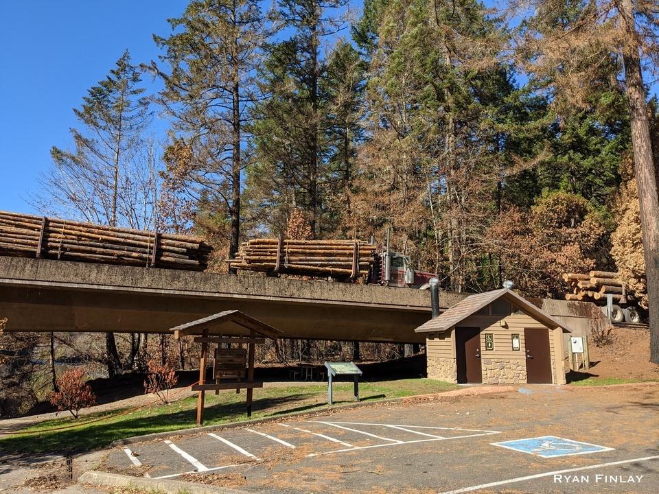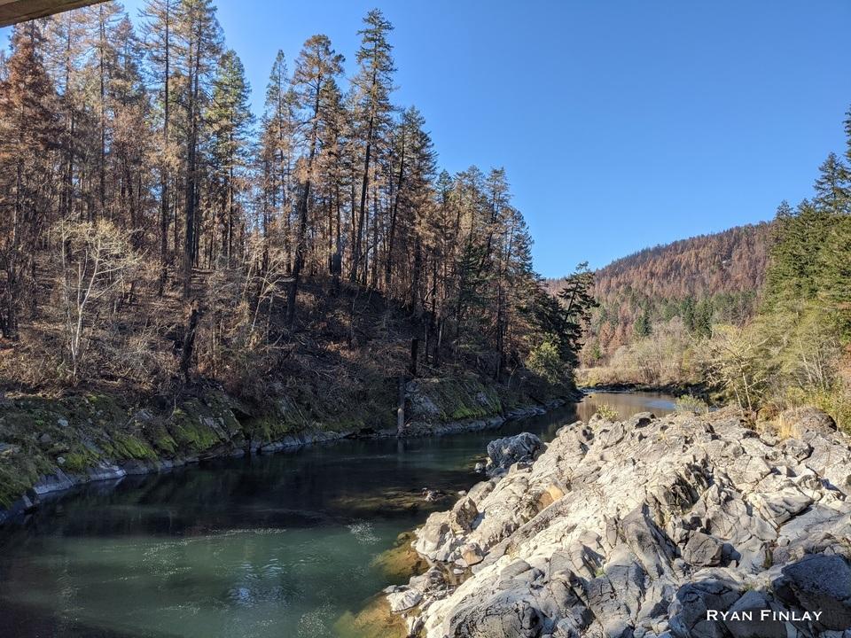 I recently stopped by Swiftwater Park along the North Umpqua River and wanted to share an update on how things look there. The fire did burn through the park but not severely. There is some tree damage and minor damage to some signposts. The bathroom facility survived. The other side of the river, to the south, definitely got burned pretty good. The views are still beautiful though!