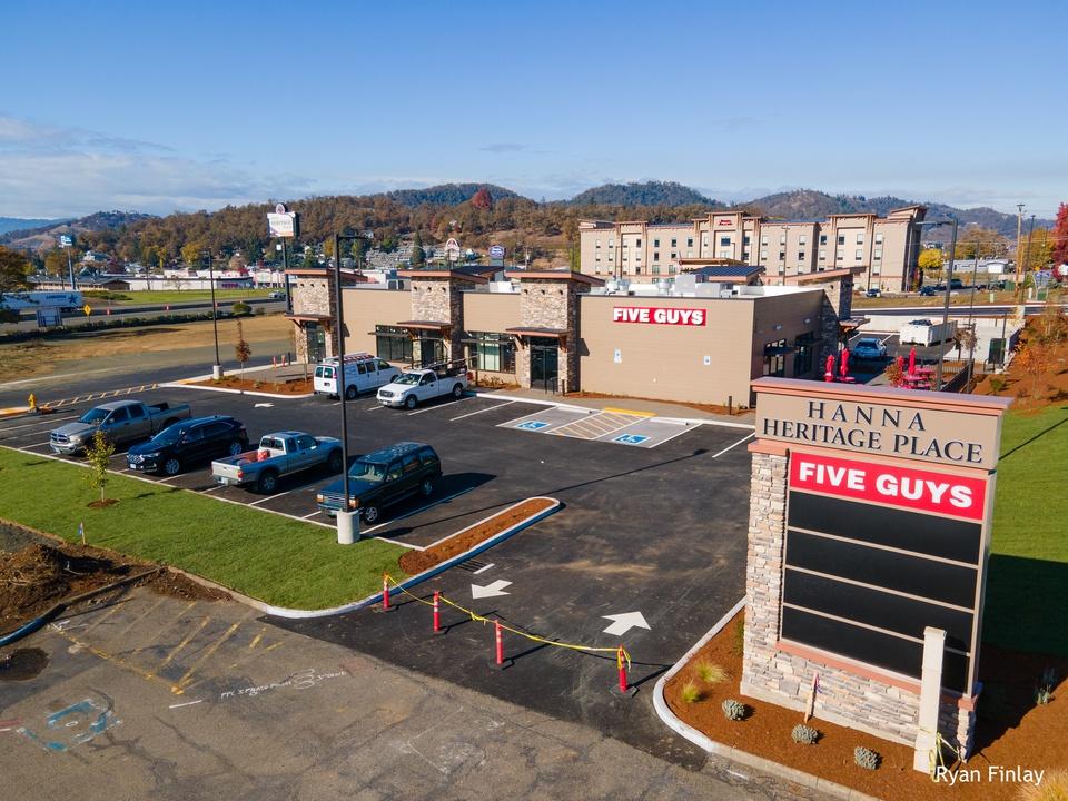 Five Guys Burgers and Fries is opening in Roseburg tomorrow November 4 at 11 a.m. The restaurant becomes the first business to open in the new Hanna Heritage Place retail center and will occupy a 2500 square foot space closest to Mulholland Drive with both indoor and outdoor seating. Spectrum Internet will be the second tenant in that building, with an opening projected sometime around the start of 2021. The third tenant has yet to be revealed for the final space in the first building within Hanna Heritage Place. There were plans earlier this year to develop a second building within the retail center with a scheduled completion sometime in 2021. Currently, the Hanna Heritage Place has ground leases and build to suit opportunities available within the center. Businesses interested in securing a tenant space should call 541-492-3288.